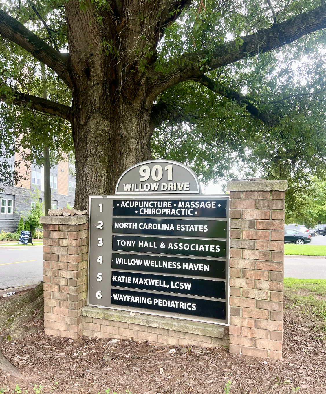 We are located in front of the 901 building, facing Willow Drive. Parking spaces available in the front and back lots. You will also find chiropractic care, massage therapy, physical therapy, and aesthetics in our Wellness Suite.